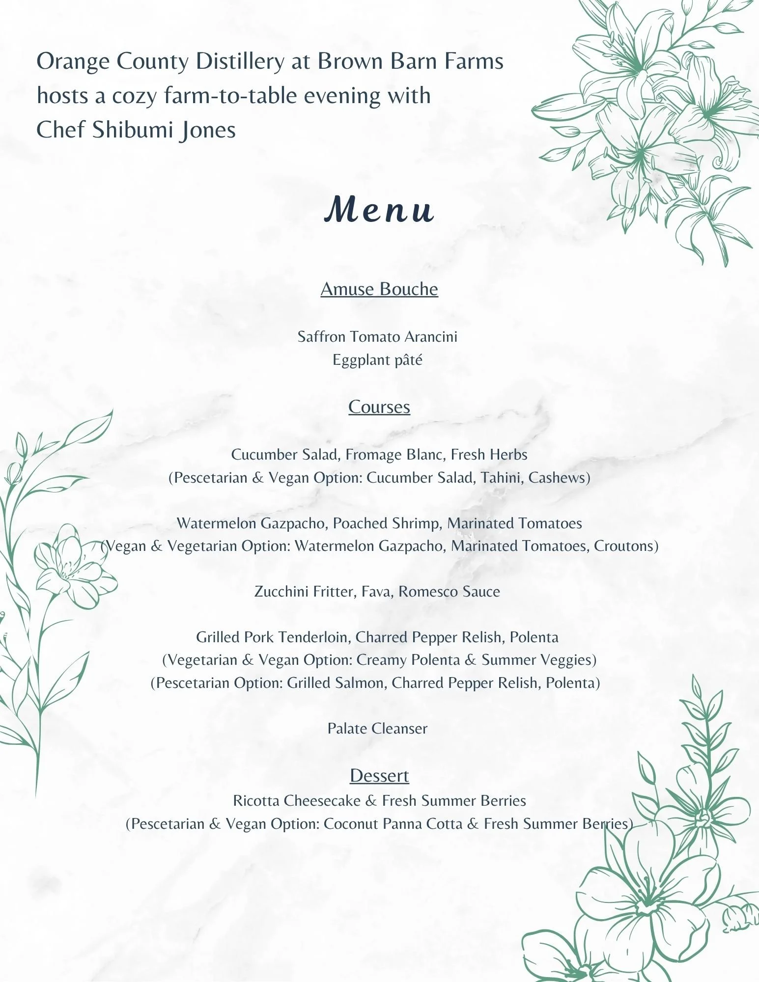 Join us for a magical farm-to-table dinner on Friday evening, August 1st, hosted by Orange County Distillery at Brown Barn Farms. Chef Shibumi Jones will craft a seasonal menu celebrating the rich bounty of the Hudson Valley, featuring locally sourced ingredients at their peak. Enjoy an unforgettable outdoor evening surrounded by rustic charm, fine spirits, and vibrant flavors. It’s a perfect summer night of community, cuisine, and connection.